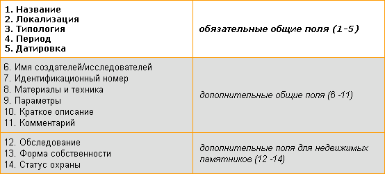 Всем участникам семинара была предложена следующая структура гипотетической общей этикетки для памятника культуры (основанная на материалах 4 проектов: археология, архитектура, ландшафт и музейный предмет):